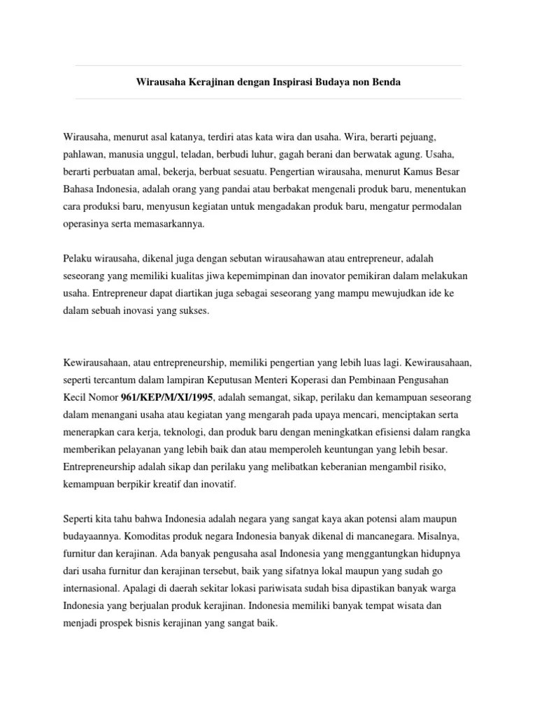 inspirasi budaya lokal non benda. Karakteristik dalam kewirausahaan kerajinan dengan inspirasi budaya nonbenda wirausaha, menurut asal katanya, terdiri atas kata wira dan usaha. Kreasi kerajinan dengan inspirasi budaya lokal non benda khas kalimantan timur sangat bermanfaat untuk menciptakan peluang usaha. Soal wirausaha kerajinan dengan inspirasi objek budaya lokal bima buku. Kd 3.10 dan kd 4.10 strategi.